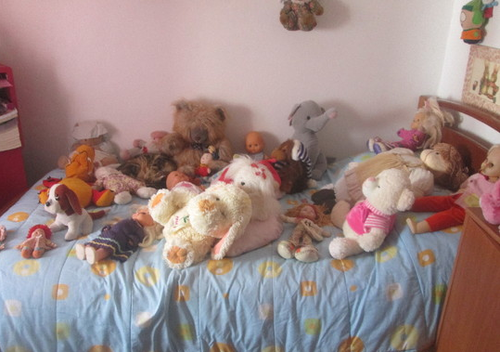 Já parece uma daquelas cenas em que nos pedem para descobrir o intruso. Neste caso, onde é que está a intrusa, que não é boneca nem animal de peluche?!