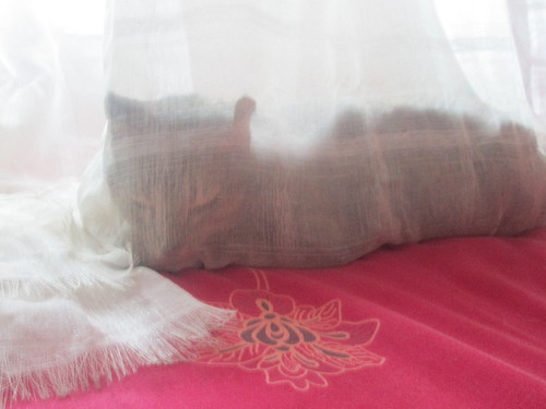 E, mais uma vez, embrulhada no cortinado :)