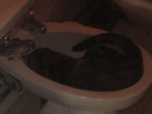 Dentro do bidé, com a cabeça quase enfiada no ralo e a cauda espetada?