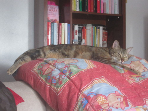 Gosto tanto de me deitar aqui em cima, quando a minha dona está a fazer a cama!