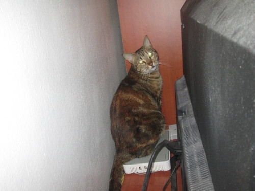 É que os meus donos acham que eu já perdi esta mania, e nem desconfiam que eu estou aqui. Até porque a televisão é tão grande que não deixa ver nada cá para trás.